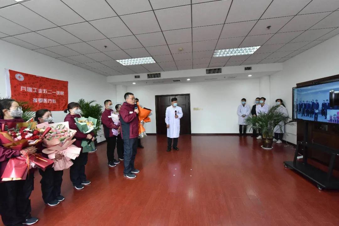 焦開河指出,面對突如其來的新冠肺炎疫情的嚴(yán)峻考驗(yàn),521醫(yī)院7名援鄂醫(yī)療隊(duì)隊(duì)員堅(jiān)決響應(yīng)習(xí)近平總書記和黨中央號召,肩負(fù)集團(tuán)公司黨組和全集團(tuán)23萬干部職工的重托,聞令而動、挺身而出,奔赴抗擊疫情第一線。援鄂期間,杭博、郭苓、緱豪兵、楊嬌4位同志,充分發(fā)揮了共產(chǎn)黨員的先鋒模范作用,呂戈、侯永生、曹利娜3位同志火線入黨,不辱使命、不負(fù)重托,出色完成了任務(wù)。7位同志的辛勤付出,充分體現(xiàn)了“把一切獻(xiàn)給黨”的人民兵工精神,體現(xiàn)了大愛無疆的醫(yī)者仁心,體現(xiàn)了集團(tuán)公司大國頂梁柱的責(zé)任擔(dān)當(dāng),為黨旗爭了光,為集團(tuán)公司添了彩。全集團(tuán)廣大干部職工要學(xué)習(xí)他們的先進(jìn)事跡,為奪取疫情防控和實(shí)現(xiàn)全年目標(biāo)任務(wù)的“雙勝利”不懈奮斗! 杭博、呂戈作了發(fā)言,感謝集團(tuán)公司黨組的關(guān)心和支持,表示一定要發(fā)揚(yáng)優(yōu)良作風(fēng),立足本職、努力工作,為兵器工業(yè)的發(fā)展做出更大貢獻(xiàn)。