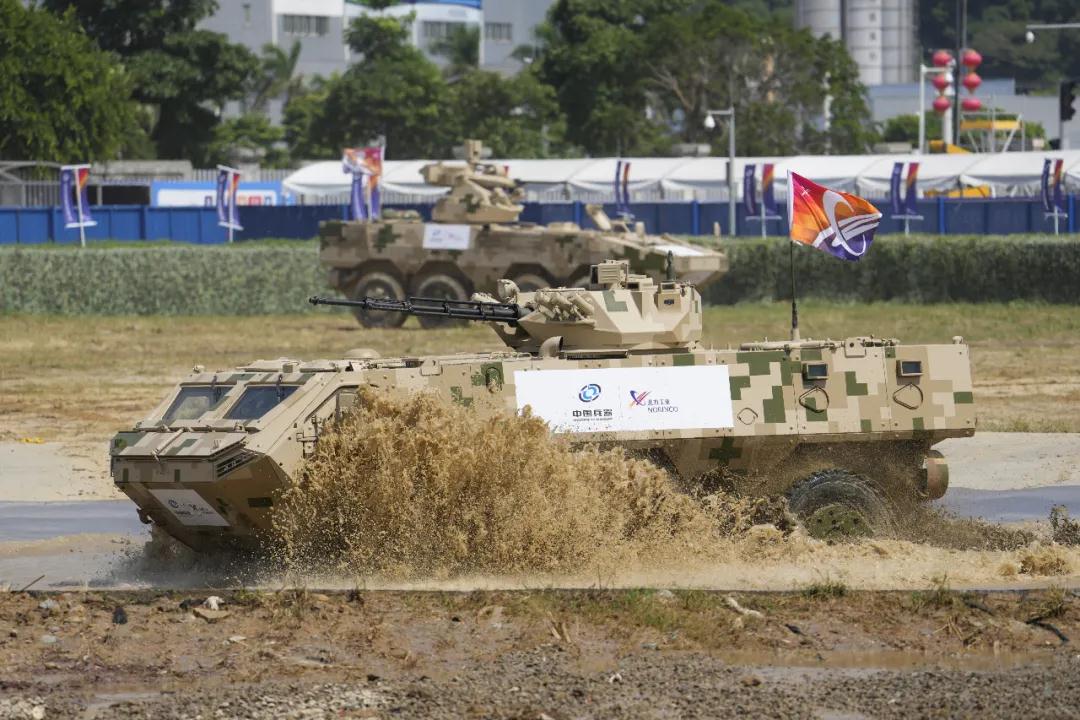 地面裝備動態(tài)表演環(huán)節(jié),場地進一步增大,由兵器工業(yè)集團自主研發(fā)制造的主戰(zhàn)坦克、輪式裝甲車、履帶式步兵戰(zhàn)車、防雷車、輪式防護型步兵輸送車、運輸車等將現(xiàn)場表演爬縱坡、過壕溝、涉水池、蛇形機動等項目,展示高度的機動靈活性和強大的越野能力,為廣大觀眾帶來耳目一新的視覺盛宴。