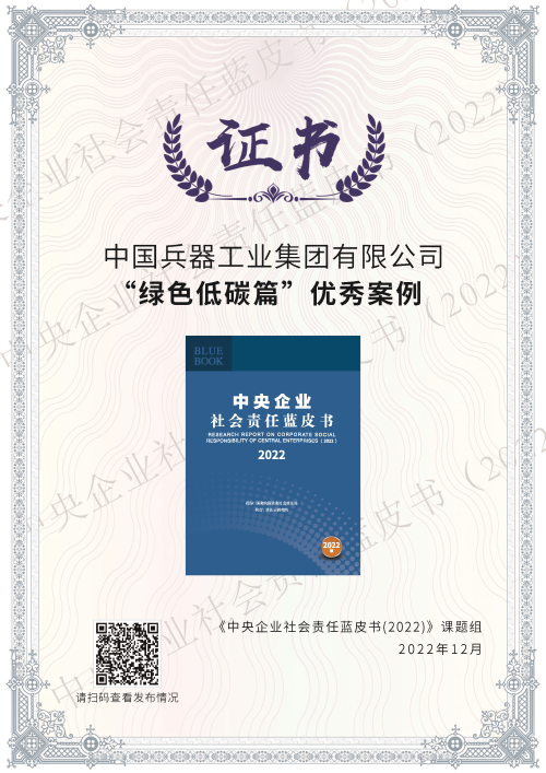 兵器工業(yè)集團(tuán)綠色低碳案例入選《中央企業(yè)社會責(zé)任藍(lán)皮書(2022)》 |