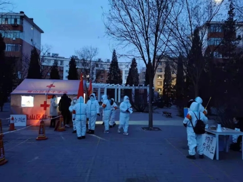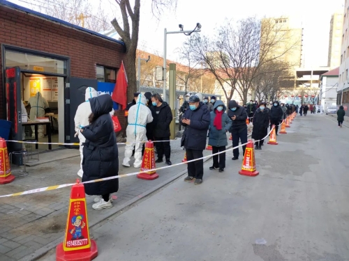 當(dāng)前,內(nèi)蒙古自治區(qū)疫情防控形勢(shì)依然嚴(yán)峻,包頭市中風(fēng)險(xiǎn)地區(qū)已達(dá)7個(gè)。面對(duì)疫情,中國(guó)兵器工業(yè)集團(tuán)有限公司駐包頭單位積極行動(dòng),支援當(dāng)?shù)匾咔榉揽?,共筑安全防線。 凌晨集結(jié),投身核酸檢測(cè)工作 來自一機(jī)集團(tuán)、北重集團(tuán)、材料院52所包頭事業(yè)部的共計(jì)500余名志愿者密切配合包頭市防疫部門、街道社區(qū)進(jìn)行全員核酸檢測(cè),同時(shí)做好信息登記、維護(hù)秩序、宣傳政策等工作,確保核酸檢測(cè)全覆蓋。2月20日凌晨,在零下20度的寒風(fēng)中,志愿者全部在支援地集結(jié)到位,做好核酸檢測(cè)前的相關(guān)準(zhǔn)備。 一機(jī)集團(tuán)黨員突擊隊(duì) 志愿者們搭建臨時(shí)帳篷,用圍擋封控家屬區(qū),配合醫(yī)護(hù)人員組織居民排隊(duì),有序進(jìn)行核酸檢測(cè)。檢測(cè)工作開始后,志愿者們用溫暖的話語(yǔ)安撫居民們的情緒,引導(dǎo)居民有序入場(chǎng),檢測(cè)居民體溫,登記核對(duì)信息,轉(zhuǎn)運(yùn)檢測(cè)樣本。為了盡可能提高檢測(cè)工作效率,志愿者在各條核酸檢測(cè)通道指導(dǎo)群眾掃碼登記,一對(duì)一幫助老人、兒童等不便使用智能手機(jī)的群眾解決困難,使其能順利進(jìn)行核酸檢測(cè)。 逐戶上門,確保應(yīng)檢盡檢 為確保所支援地區(qū)完成全員核酸檢測(cè)工作,志愿者自愿組隊(duì),挨家挨戶上門通知,進(jìn)行人員核對(duì),對(duì)于處在隔離期的居民以及行動(dòng)不便的老人、兒童采取了入戶核酸檢測(cè)。