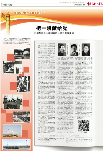 1月6日,貫徹落實中央企業(yè)黨的建設(shè)工作座談會精神專題推進會在京召開。會上,中國兵器工業(yè)集團有限公司等5家單位作了“賡續(xù)央企精神血脈”主題宣講報告。3月21日,《中國組織人事報》刊發(fā)賡續(xù)央企精神血脈系列之一——《把一切獻給黨——中國兵器工業(yè)集團有限公司主題宣講詞》。