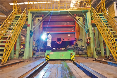 中國兵器工業(yè)集團(tuán)一機(jī)集團(tuán)北方創(chuàng)業(yè)公司生產(chǎn)線開足馬力生產(chǎn)鐵路車輛產(chǎn)品。日前,為圓滿完成1200臺(tái)C70E(H)型通用敞車生產(chǎn)任務(wù),該公司不斷創(chuàng)新生產(chǎn)組織模式,新、舊兩條生產(chǎn)線全面啟動(dòng),白、夜班雙班組織生產(chǎn),有效保障生產(chǎn)進(jìn)度。(王磊 攝)