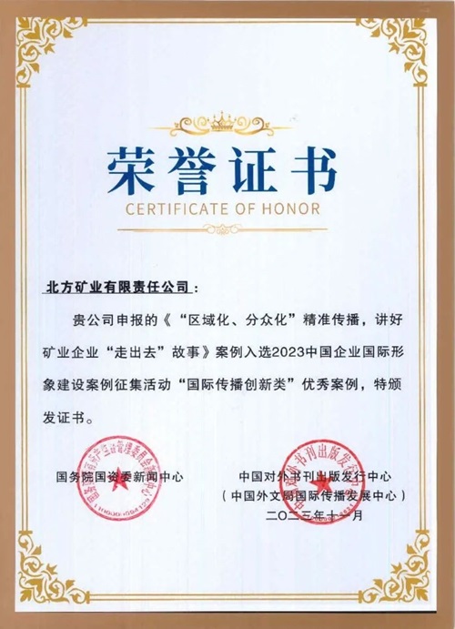 論壇上,“2023中國企業(yè)國際形象建設(shè)案例征集活動”評選結(jié)果揭曉。評選活動以“挖掘典型案例、建設(shè)企業(yè)形象、講好中國故事”為宗旨,從來自中央企業(yè)、地方國企及民營企業(yè)報送的251個有效案例中遴選出“共建新絲路”“跨文化融合”“國際傳播創(chuàng)新”“筑夢人物故事”四類專項優(yōu)秀案例共40個。中國兵器工業(yè)集團北方公司北方礦業(yè)有限責(zé)任公司案例《“區(qū)域化、分眾化”精準(zhǔn)傳播,講好礦業(yè)企業(yè)“走出去”故事》入選“國際傳播創(chuàng)新類”優(yōu)秀案例。 作為高質(zhì)量共建“一帶一路”的重要力量,北方礦業(yè)堅持以“區(qū)域化、分眾化”精準(zhǔn)傳播方式塑造企業(yè)形象,根據(jù)項目所在國社交媒體使用情況,建立臉書、推特、領(lǐng)英傳播矩陣,使用英、法、阿多語發(fā)布,堅持屬地人講屬地事,以高品質(zhì)視頻、海報、圖文等多媒體形式講述中國企業(yè)為當(dāng)?shù)乜沙掷m(xù)發(fā)展做出的貢獻,并取得積極傳播成效。